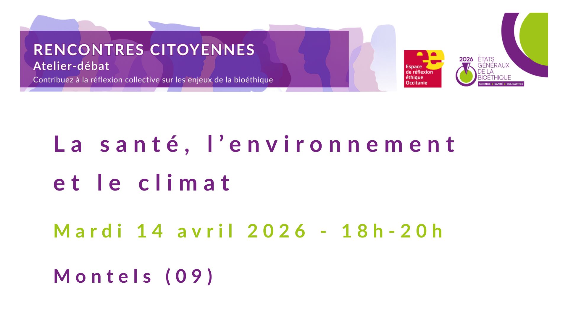 À l’occasion des États Généraux de la Bioéthique, l’Espace de réflexion éthique Occitanie (EREO), en partenariat avec le Comité d’éthique et bientraitance de l’Ariège, a le plaisir de vous inviter à une rencontre citoyenne sur le thème :
