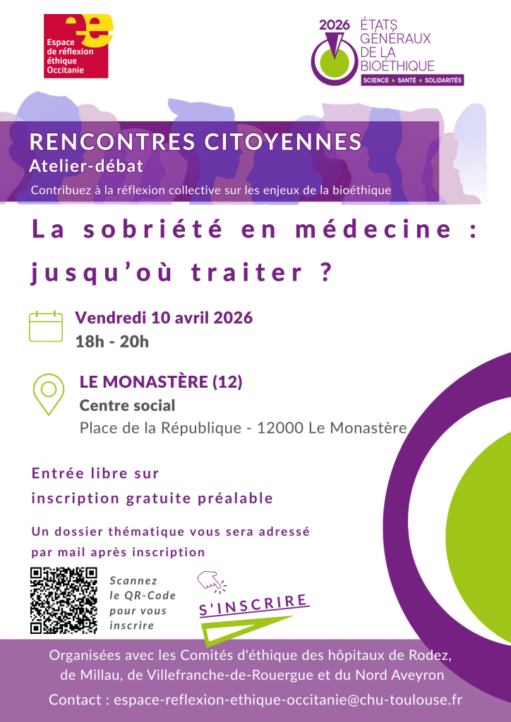 À l’occasion des États Généraux de la Bioéthique, l’Espace de réflexion éthique Occitanie (EREO), en collaboration avec les comités d’éthique des hôpitaux de Rodez, de Millau, de Villefranche-de-Rouergue et du Nord Aveyron, a le plaisir de vous inviter à une rencontre citoyenne sur le thème :