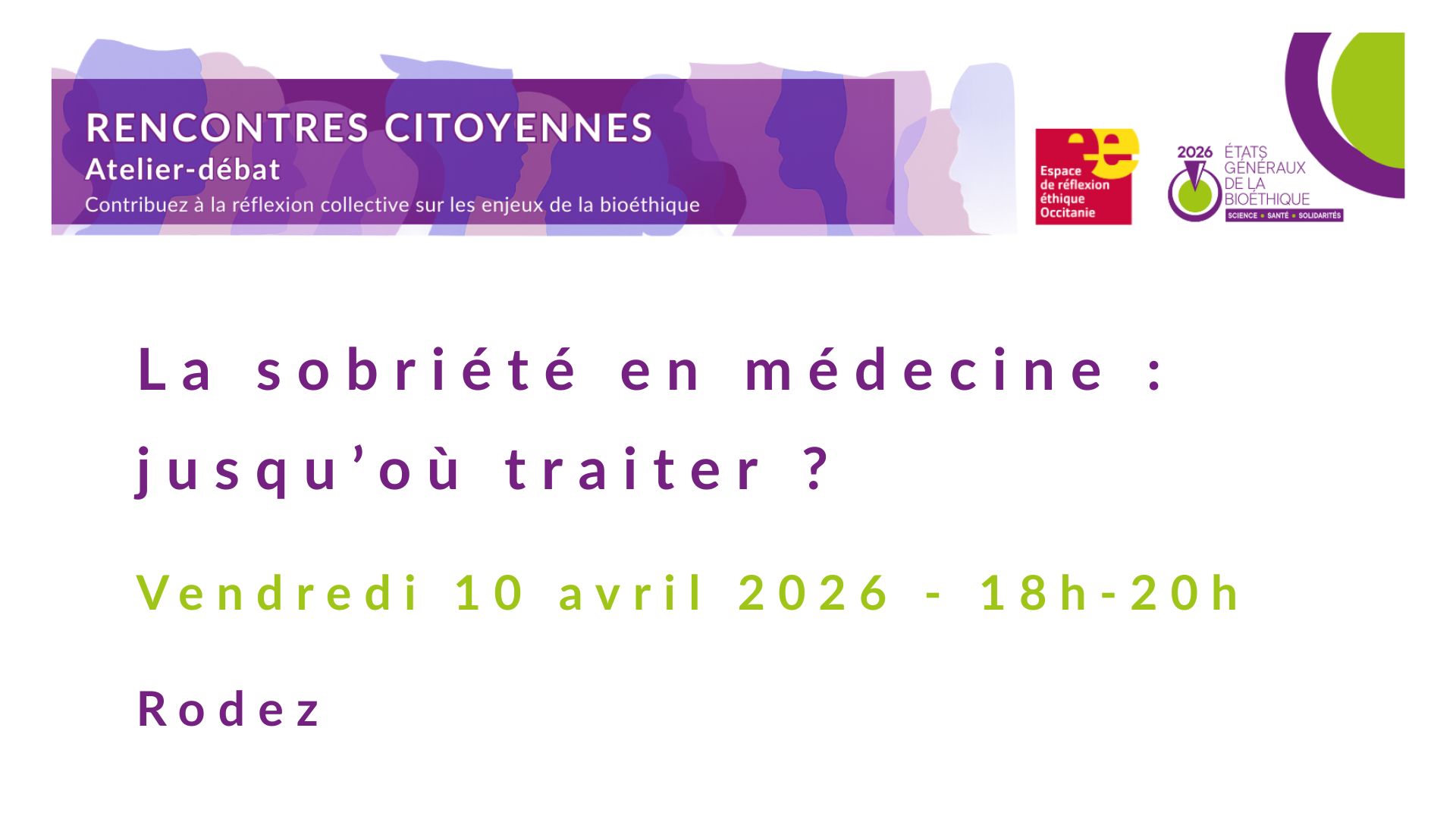À l’occasion des États Généraux de la Bioéthique, l’Espace de réflexion éthique Occitanie (EREO), en collaboration avec les comités d’éthique des hôpitaux de Rodez, de Millau, de Villefranche-de-Rouergue et du Nord Aveyron, a le plaisir de vous inviter à une rencontre citoyenne sur le thème :
